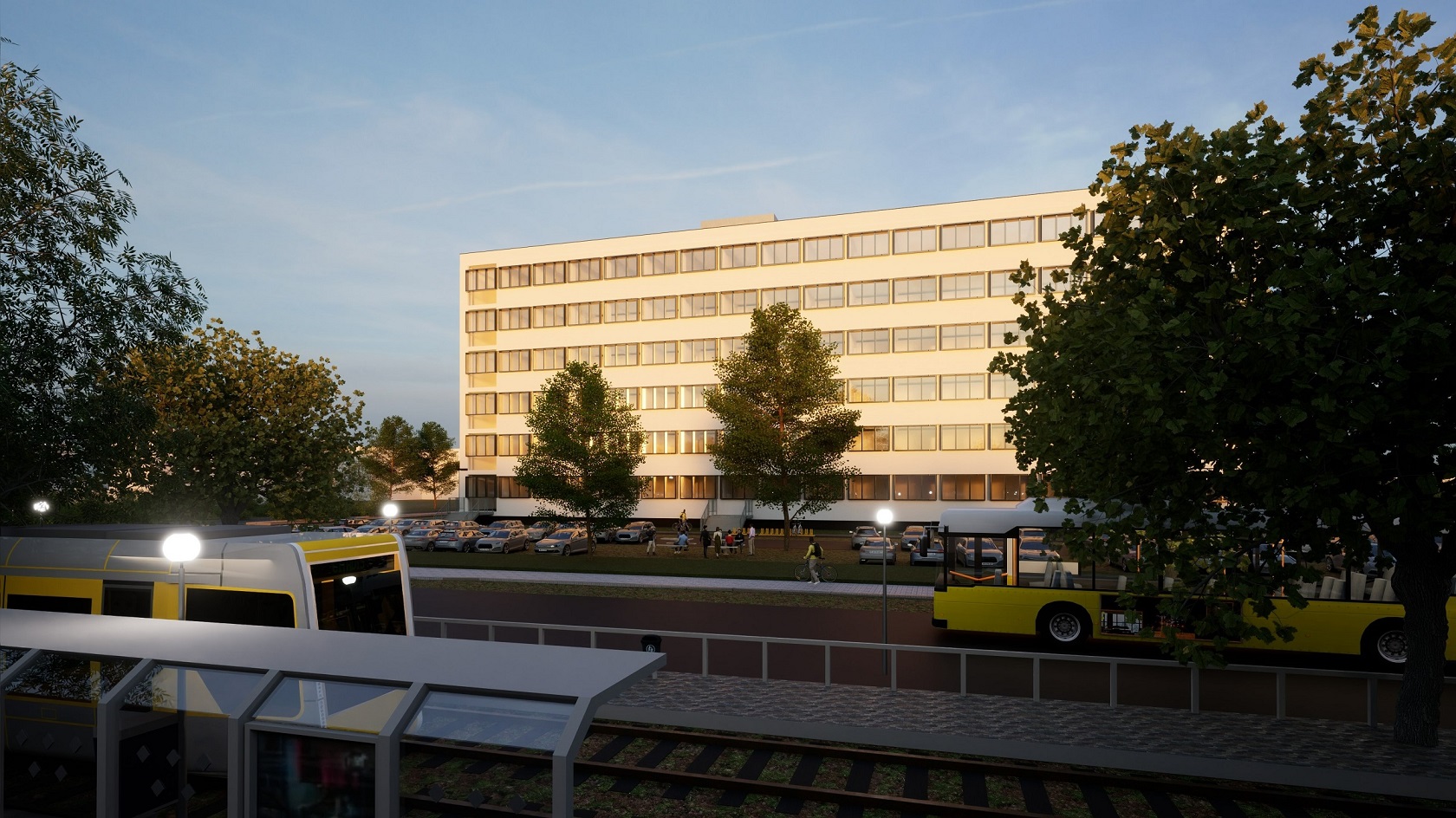 The building is located in the southeast of Berlin in the Johannisthal district, directly adjacent to the Adlershof business and science location. Like all Covivio portfolio properties, it is characterized by very good public transport connections. The proximity to BER Airport and the striking location near the Adlergestell and the A113 motorway feeder make this location particularly attractive for the future training center.