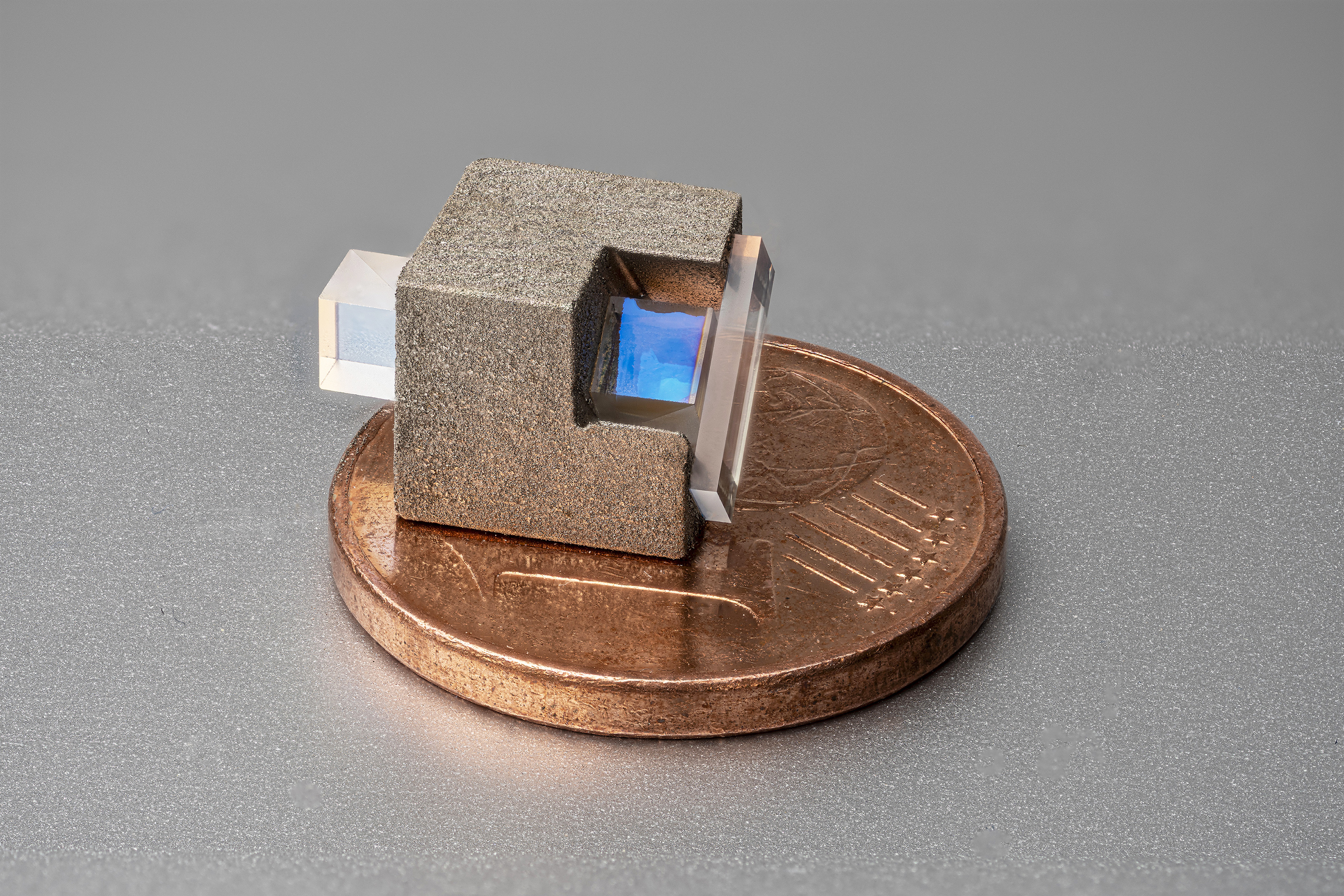 FBH's demonstrated technology enables complex, precise components with excellent mechanical stability and low weight to be additively manufactured. Vibration- and temperature-stable carrier structures for highly integrated optical and atomic physics systems are thus created. The innovative technology platform demonstrates the potential of 3D-printed aluminum oxide structures and paves the way for next-generation compact, robust, and highly sensitive quantum sensors, capable of reliable operation outside the laboratory. A prototype of an optically pumped magnetometer (OPM) has already been realized on this technology platform with a total volume of only 7 ml.