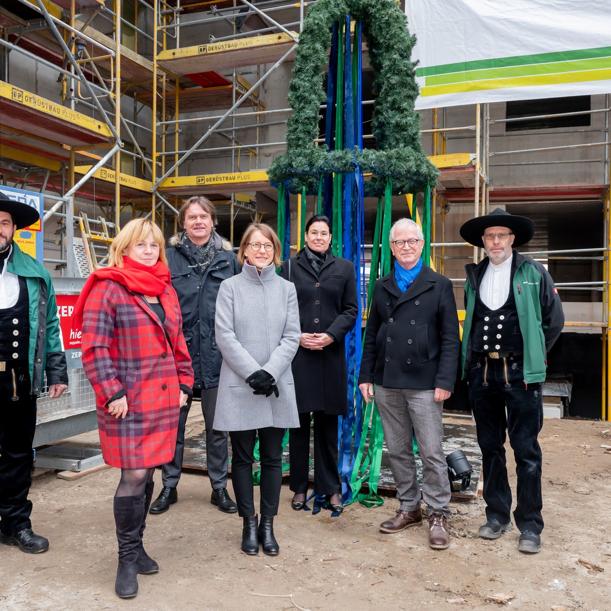In Senftenberger Strasse in the Berlin district of Marzahn-Hellersdorf, in the presence of STADT UND LAND management Natascha Klimek and Ingo Malter, the State Secretary for Housing, Wenke Christoph, the District Councilor for Urban Development, Environmental and Nature Conservation, Streets and Green Spaces of the Marzahn-Hellersdorf district, Juliane Witt, representatives of the construction company Otto Wulff and numerous construction workers raised the topping-out wreath for 150 new and affordable two- to six-room apartments. More than 50 percent of the new apartments are being built barrier-free.